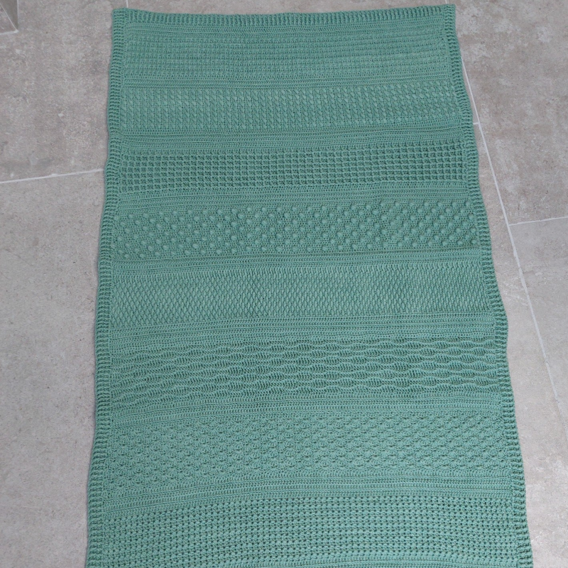 Een gehaakte deken voor de wieg. Erg mooi door het gebruik van verschillende haaksteken. Ook lekker om je kindje even in te wikkelen als het uit bad komt.